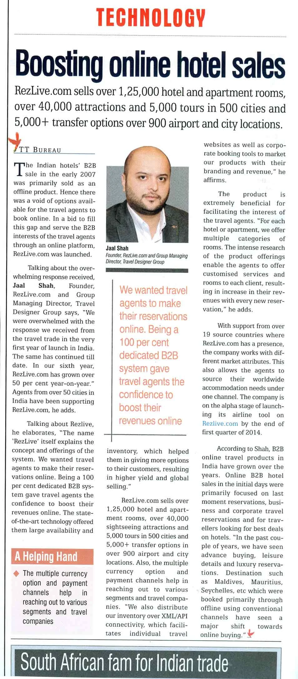 Express TravelWorld 16 November 2009 Views On Mr. Jaal Shah's (GMD - Travel Designer Group) views on "Hotel reservation system RezLive upgraded to version 3.0"